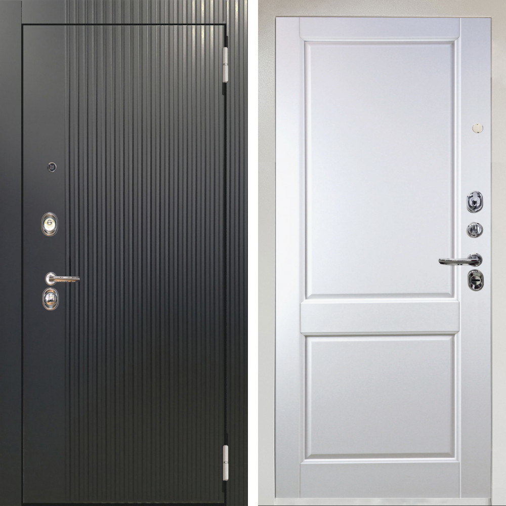 Входная дверь Аргус ЛЮКС 3К Снежно-белый Фрейда Черный кварц + Соренто Белая эмаль