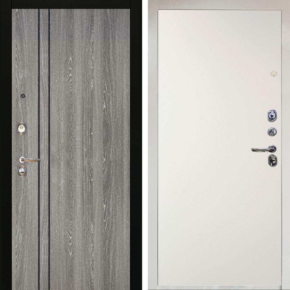 Входная дверь Termo-Door с утеплением: внешняя отделка Смарт Орегон Графит, внутренняя отделка Горизонт белый.Толщина полотна 95 мм, цилиндровый замок, доставка и установка в Москве и МО, гарантия 1 год.