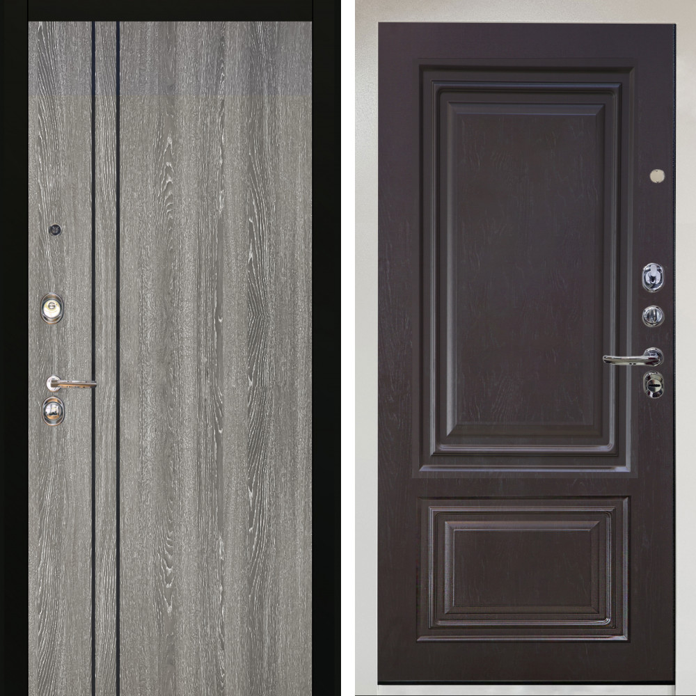 Входная дверь Termo-Door с утеплением: внешняя отделка Вертикаль Бетон Темный, внутренняя отделка Без серии Орех премиум.Толщина полотна 100 мм., цилиндровый замок, доставка и установка в Москве и МО, гарантия 1 год.