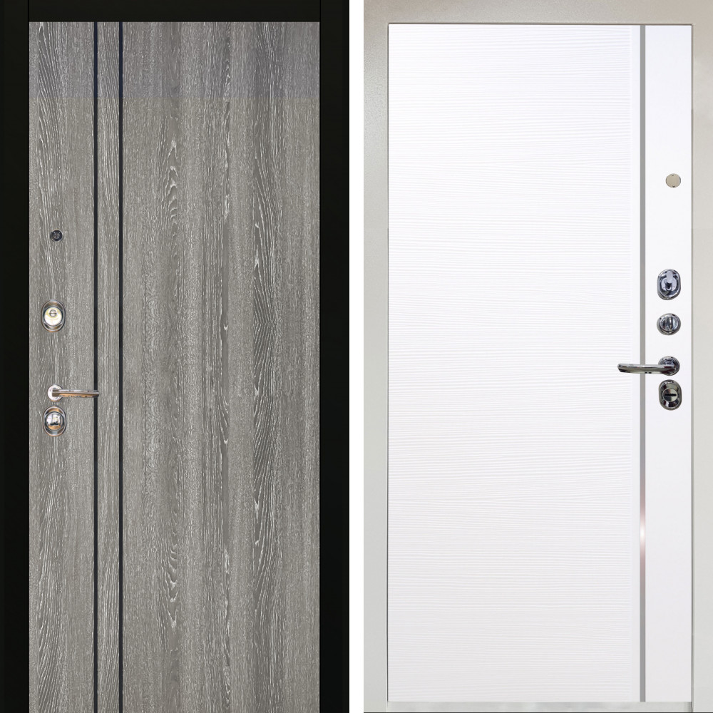 Входная дверь Termo-Door с утеплением: внешняя отделка Геометрия Дуб, внутренняя отделка Марсель Белый софт.Толщина полотна 100 мм., цилиндровый замок, доставка и установка в Москве и МО, гарантия 1 год.