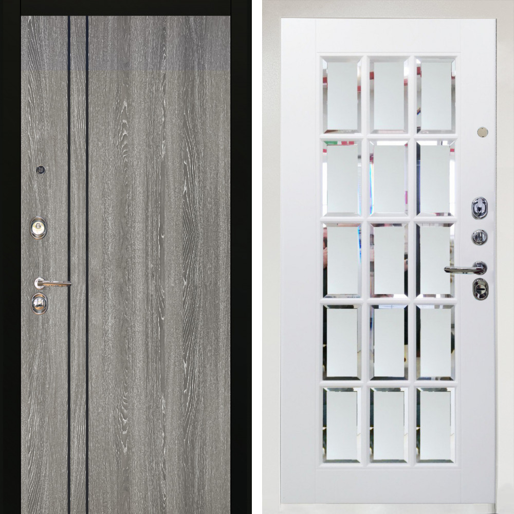 Входная дверь Аргус ЛЮКС 3К Снежно-белый гейджи + Мэрелин Софт милк с фацетом и пескоструем