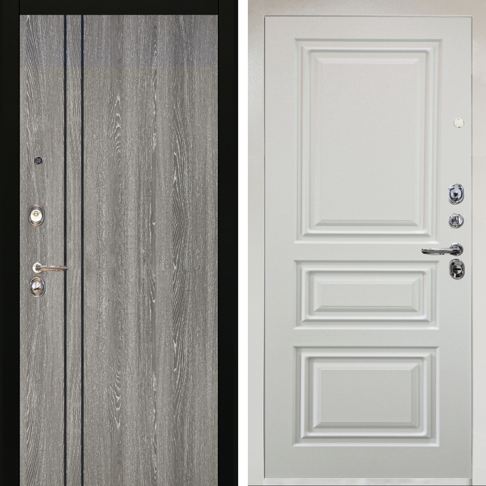 Входная дверь Termo-Door с утеплением: внешняя отделка Геометрия Бетон, внутренняя отделка Лион Белый софт.Толщина полотна 100 мм., цилиндровый замок, доставка и установка в Москве и МО, гарантия 1 год.