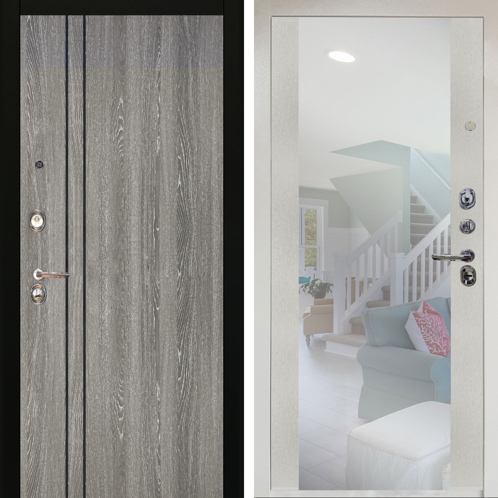 Входная дверь Termo-Door с утеплением: внешняя отделка Вертикаль Grey, внутренняя отделка Зеркало Триумф лиственница.Толщина полотна 100 мм., цилиндровый замок, доставка и установка в Москве и МО, гарантия 1 год.