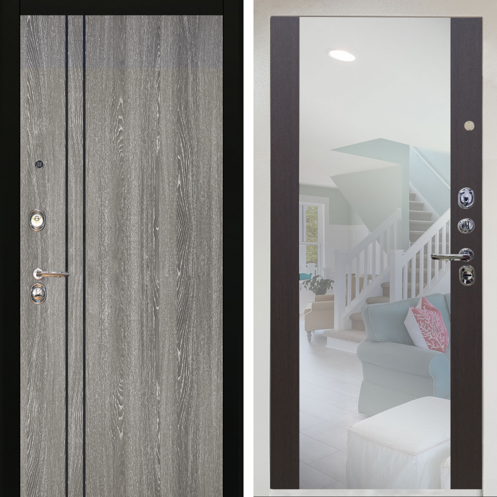 Входная дверь Termo-Door с утеплением: внешняя отделка Смарт Орегон Графит, внутренняя отделка Зеркало Триумф Царга лиственница 4500 / 5500.Толщина полотна 95 мм, цилиндровый замок, доставка и установка в Москве и МО, гарантия 1 год.