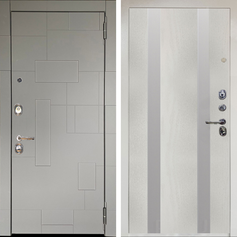 Входная дверь Аргус ЛЮКС 3К Снежно-белый Корсо Силк флай + Дуэт Белое дерево вставки Изабель