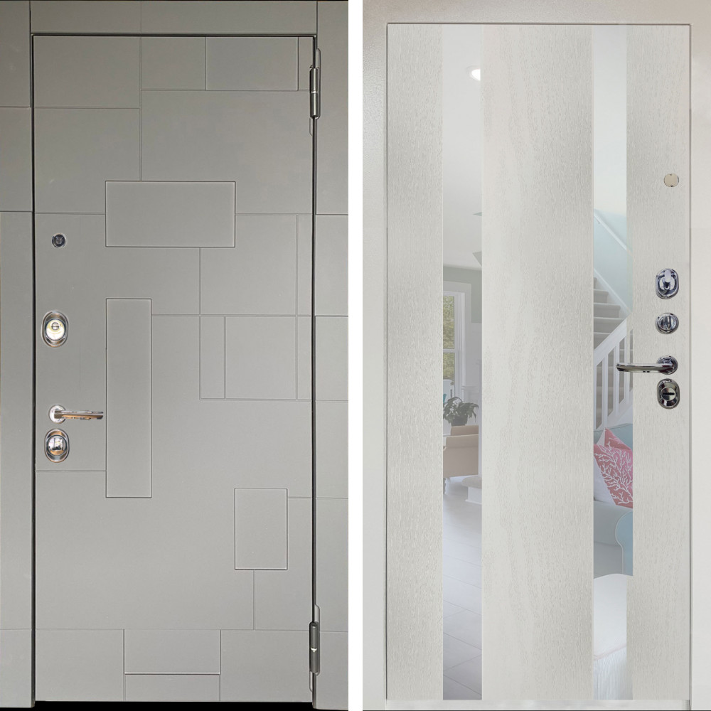 Входная дверь Аргус ЛЮКС 3К Снежно-белый Корсо Силк флай + Дуэт Белое дерево вставки Николь