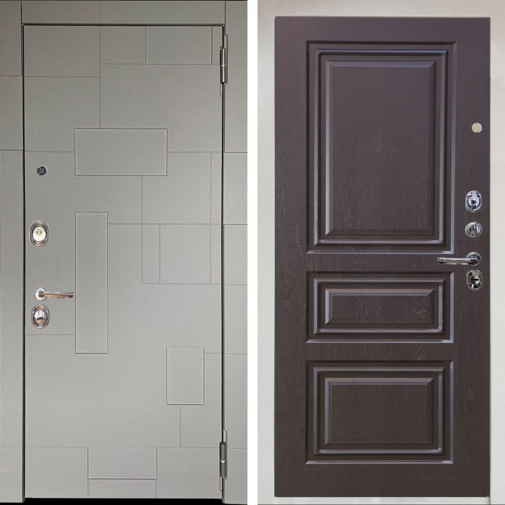 Входная дверь Termo-Door с терморазрывом и утеплением: внешняя отделка Премиум Винорит Модена Венге, внутренняя отделка Горизонт белый.Толщина полотна 95 мм, цилиндровый замок, доставка и установка в Москве и МО, гарантия 1 год.