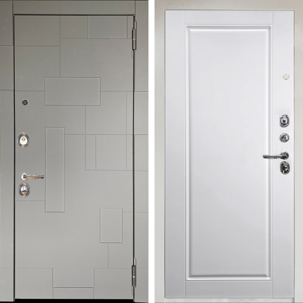 Входная дверь Termo-Door с утеплением: внешняя отделка Флекс, внутренняя отделка Нео White.Толщина полотна 100 мм., цилиндровый замок, доставка и установка в Москве и МО, гарантия 1 год.