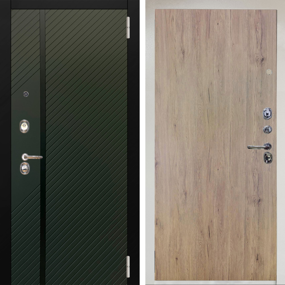 Входная дверь Termo-Door с терморазрывом и утеплением: внешняя отделка Премиум Орегон Грин, внутренняя отделка Лучи белый.Толщина полотна 95 мм, цилиндровый замок, доставка и установка в Москве и МО, гарантия 1 год.