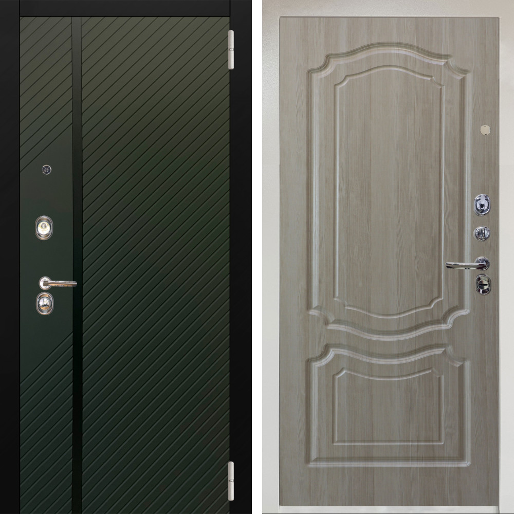 Входная дверь Termo-Door с утеплением: внешняя отделка Квантум velutto verde, внутренняя отделка Лучи бетон темный.Толщина полотна 100 мм., цилиндровый замок, доставка и установка в Москве и МО, гарантия 1 год.