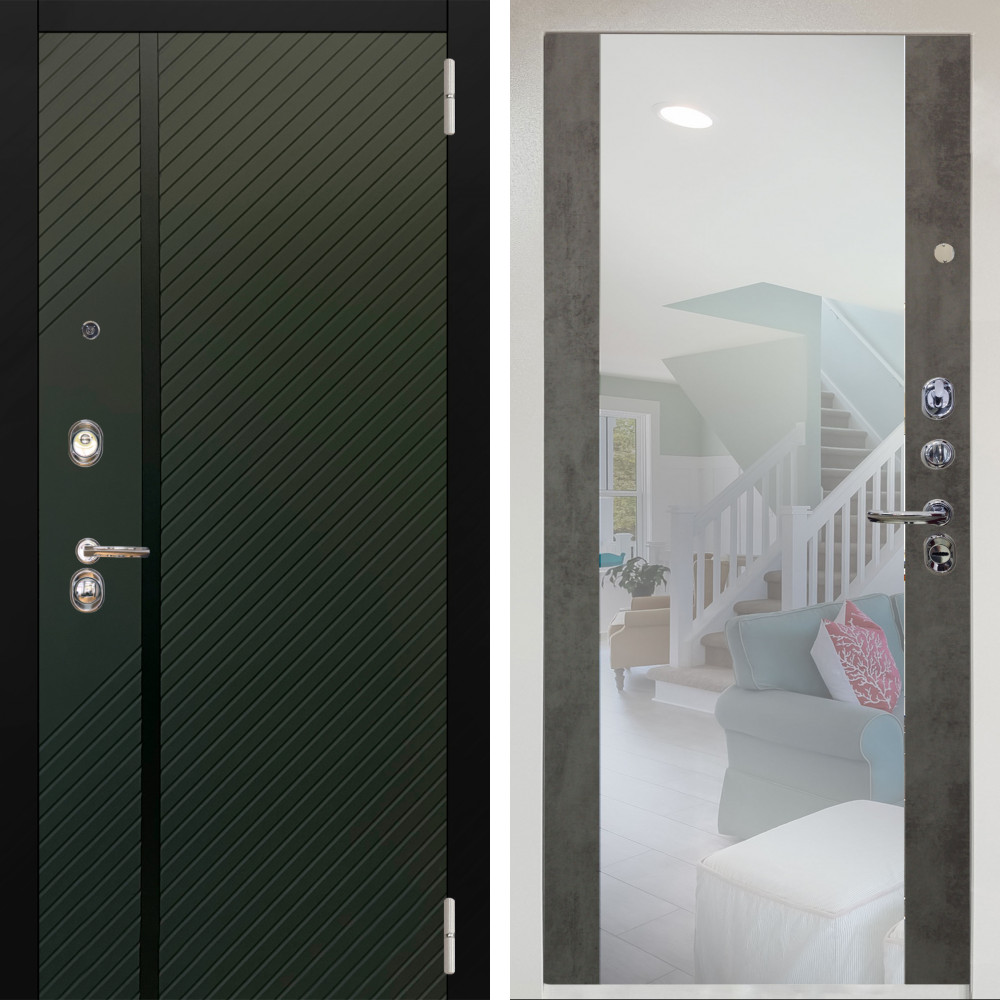 Входная дверь Termo-Door с утеплением: внешняя отделка Лучи Бетон Темный, внутренняя отделка Горизонт Слоновая кость.Толщина полотна 100 мм., цилиндровый замок, доставка и установка в Москве и МО, гарантия 1 год.