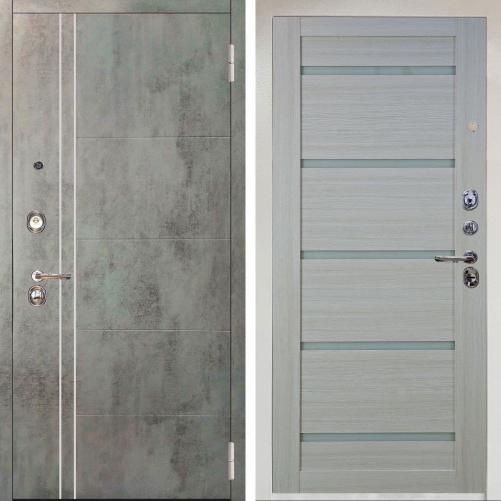 Входная дверь Аргус ЛЮКС 3К Снежно-белый Лофт Темный бетон + Александра Белая лиственница