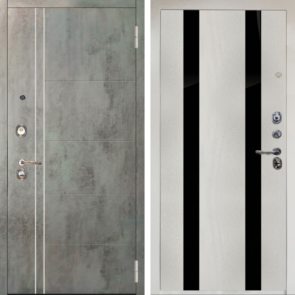 Входная дверь Аргус ЛЮКС 3К Снежно-белый Лофт Темный бетон + Дуэт Белое дерево вставки кензо