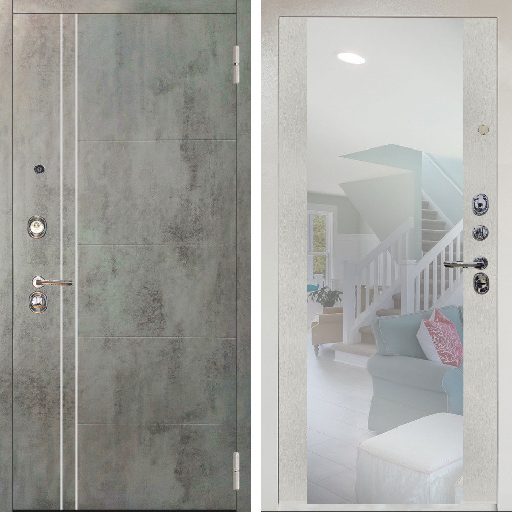 Входная дверь Аргус ЛЮКС 3К Снежно-белый Лофт Темный бетон + Вояж Белое дерево