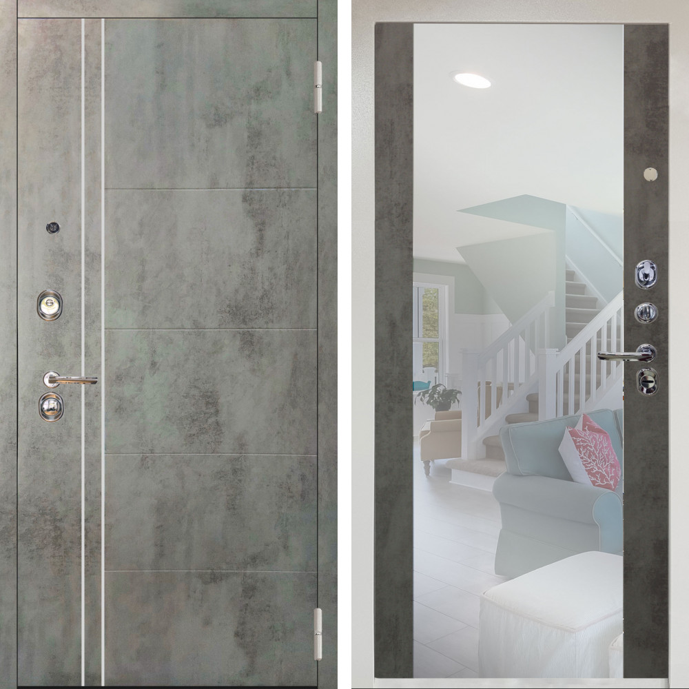 Входная дверь Termo-Door с терморазрывом и утеплением: внешняя отделка Премиум Винорит Вертикаль Grey, внутренняя отделка Зеркало Фацет Grey софт.Толщина полотна 95 мм, цилиндровый замок, доставка и установка в Москве и МО, гарантия 1 год.