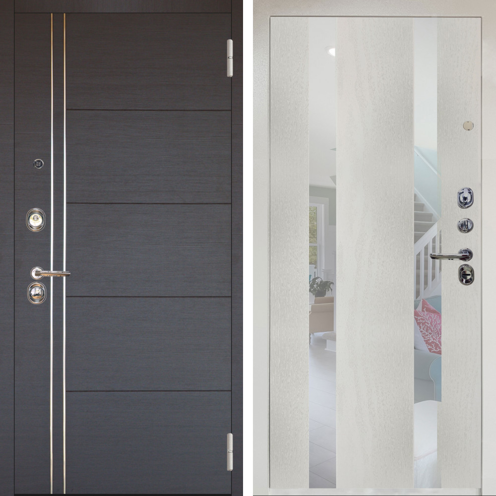 Входная дверь Аргус ЛЮКС 3К Снежно-белый Лофт Венге горизонт + Дуэт Белое дерево вставки Николь