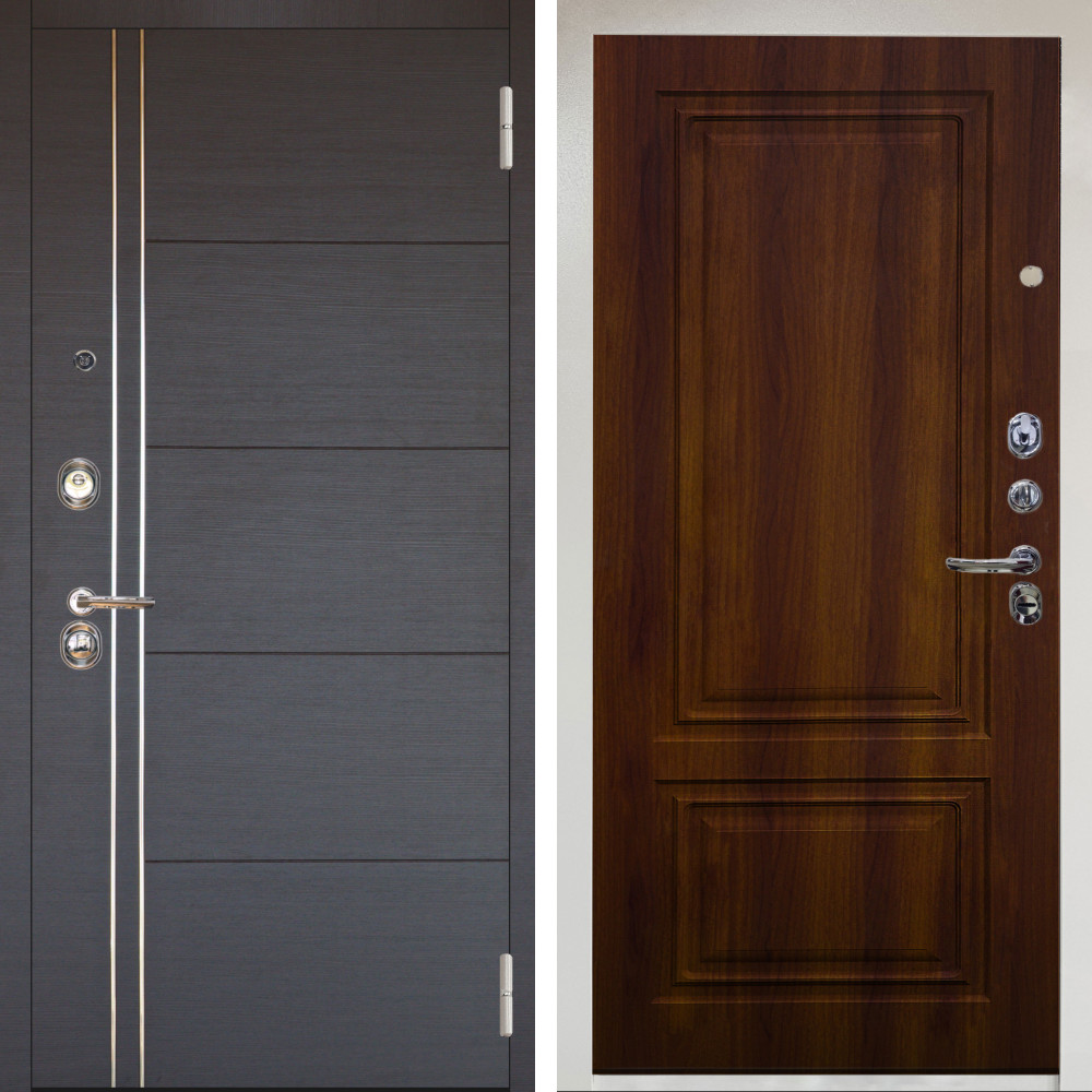 Входная дверь Termo-Door с терморазрывом и утеплением: внешняя отделка Премиум Винорит Модена Венге, внутренняя отделка Зеркало Триумф Белый софт.Толщина полотна 95 мм, цилиндровый замок, доставка и установка в Москве и МО, гарантия 1 год.