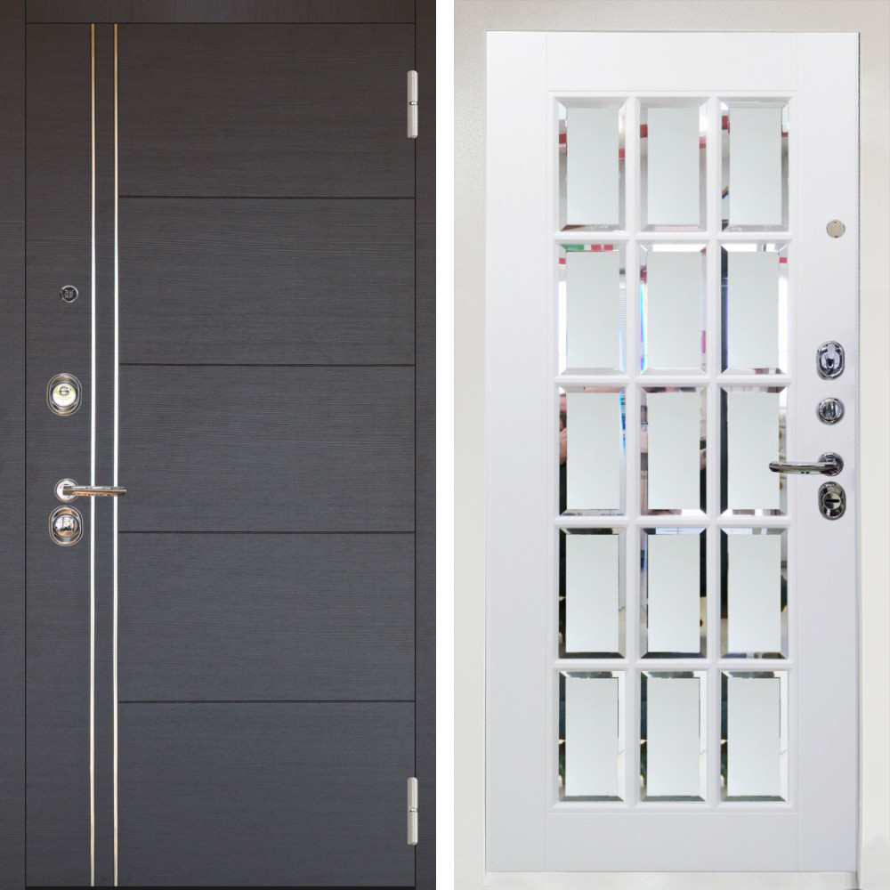 Входная дверь Аргус ЛЮКС 3К Снежно-белый Лофт Венге горизонт + Мэрелин Софт милк с фацетом и пескоструем