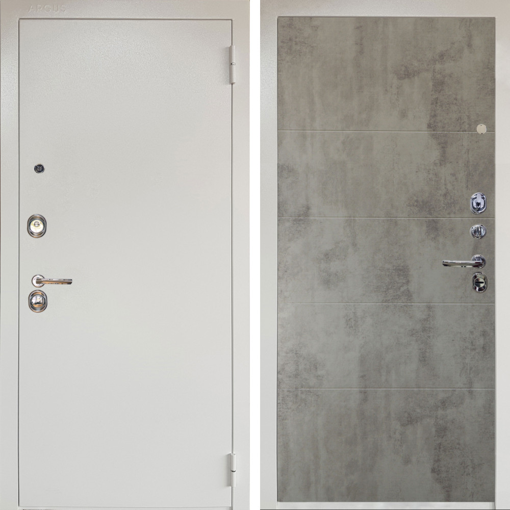 Входная дверь Аргус ЛЮКС 3К Снежно-белый Люкс 3к металл Снежно-белый + Агат Светлый бетон