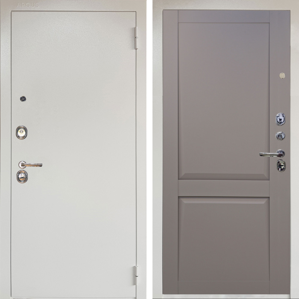 Входная дверь Аргус ЛЮКС 3К Снежно-белый Люкс 3к металл Снежно-белый + Ариана Серая эмаль