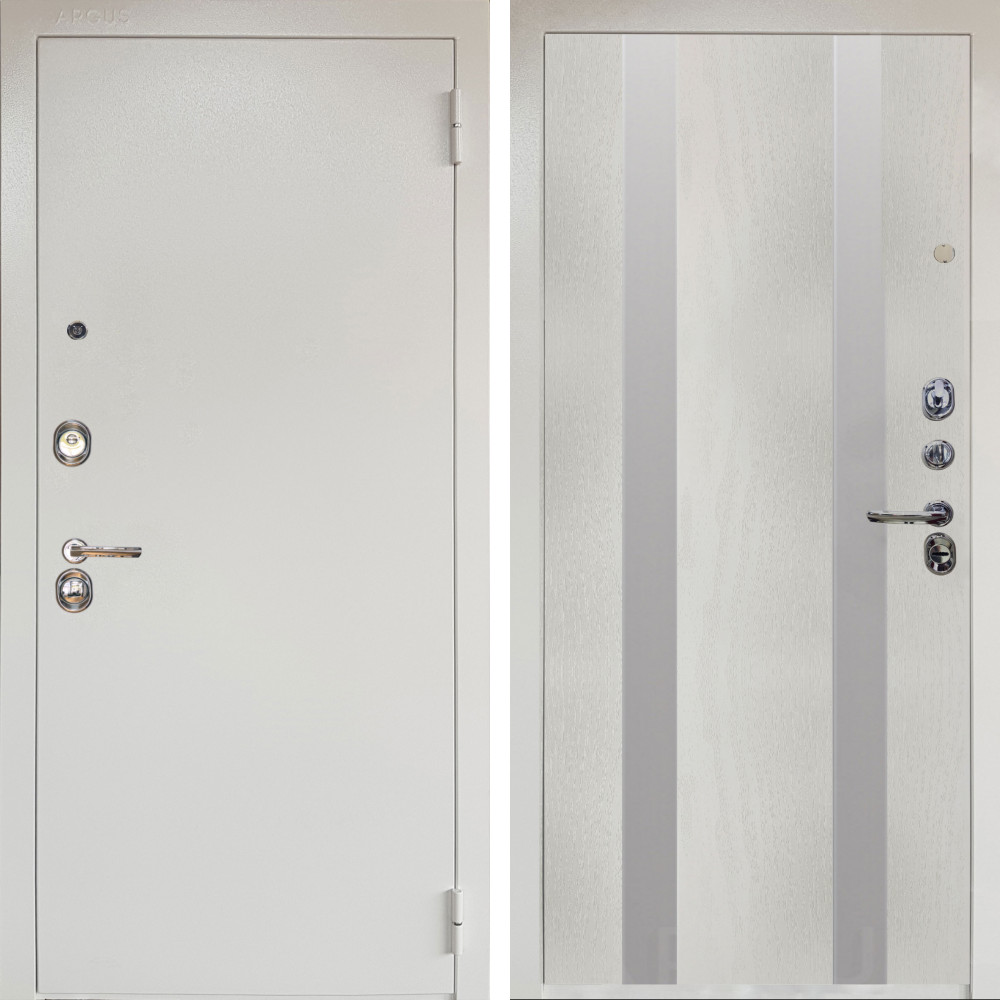 Входная дверь Аргус ЛЮКС 3К Снежно-белый Люкс 3к металл Снежно-белый + Дуэт Белое дерево вставки Изабель