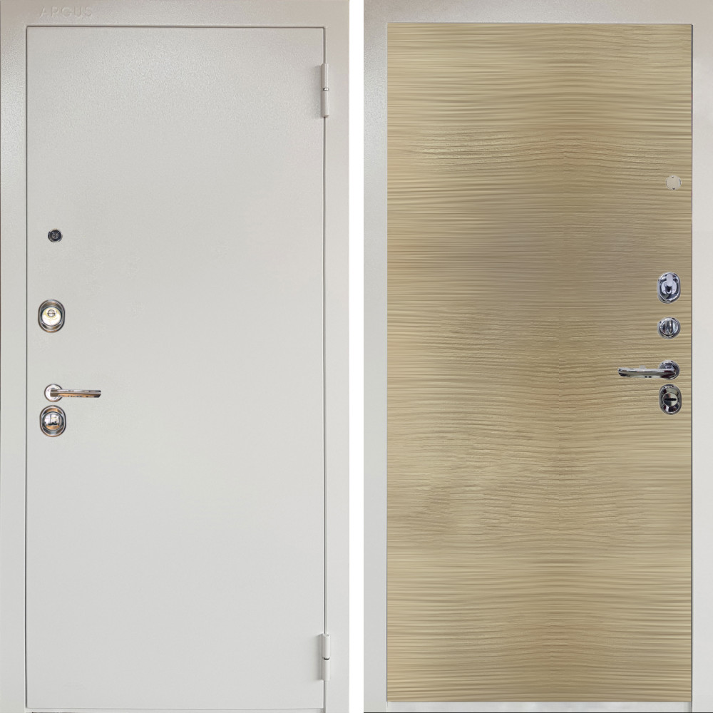 Входная дверь Аргус ЛЮКС 3К Снежно-белый Люкс 3к металл Снежно-белый + Элегант Дорс светлый горизонт