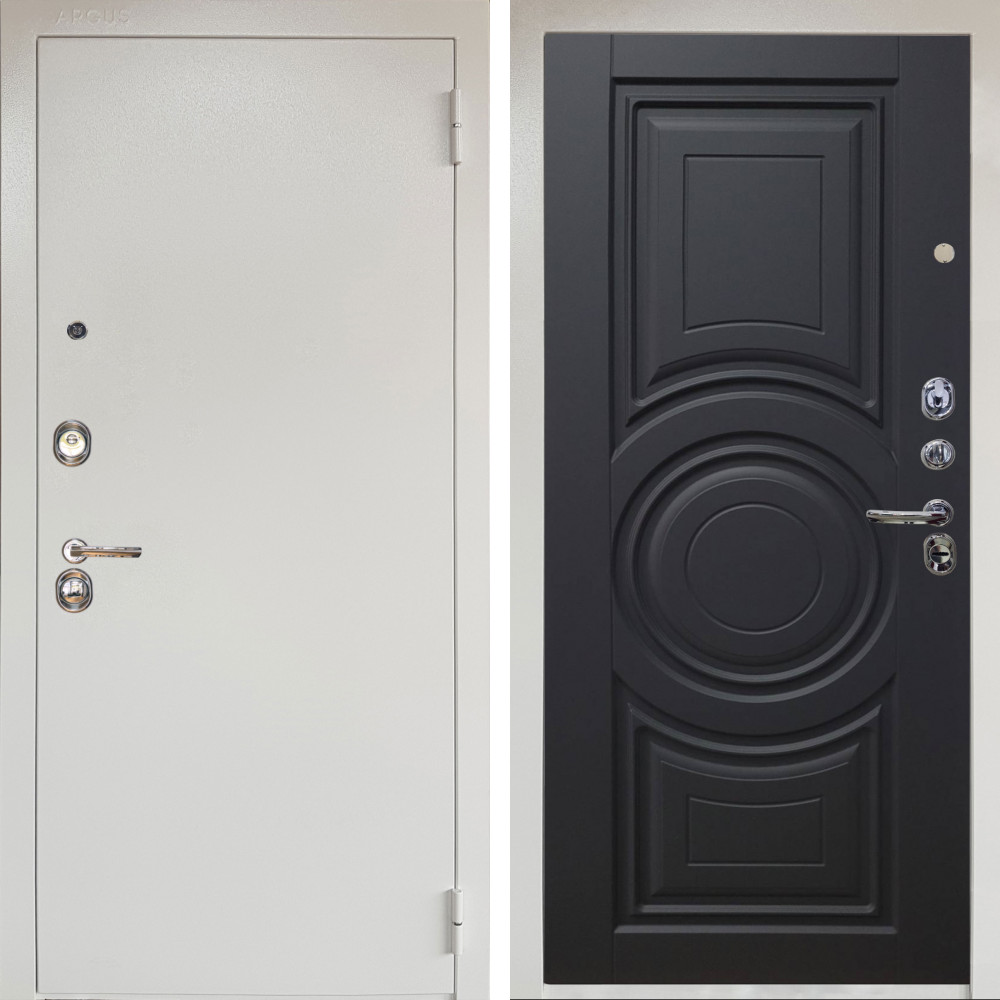 Входная дверь Аргус ЛЮКС 3К Снежно-белый Люкс 3к металл Снежно-белый + Могадиш Черный софт