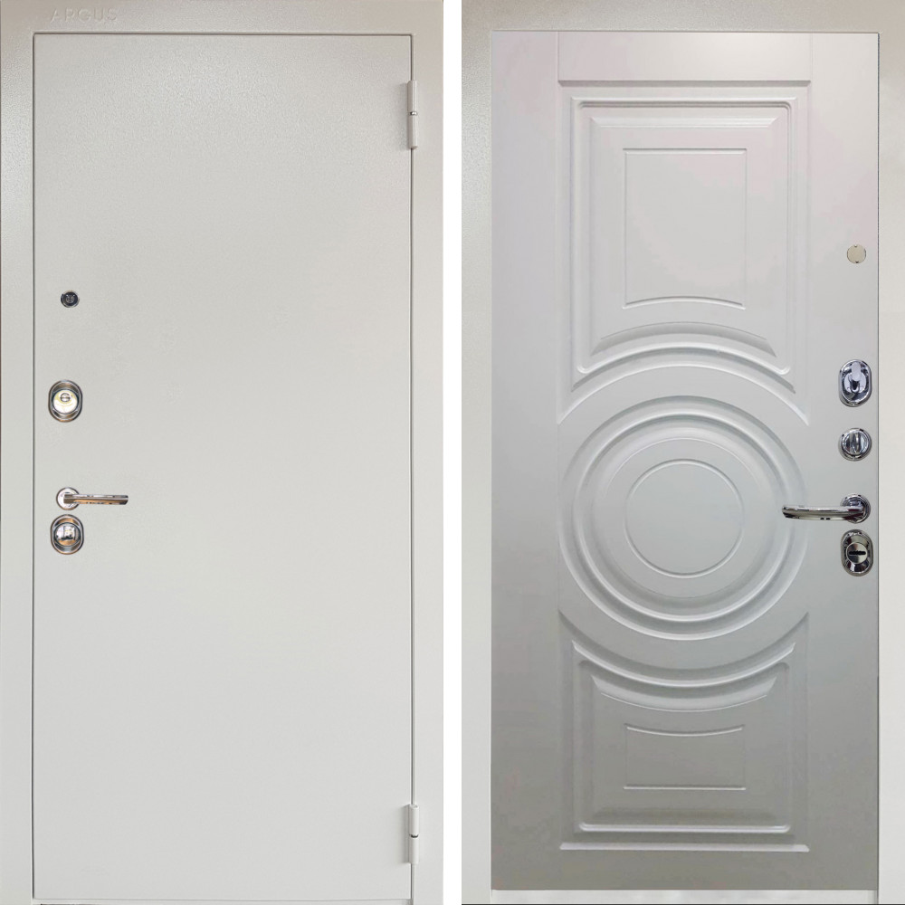 Входная дверь Аргус ЛЮКС 3К Снежно-белый Люкс 3к металл Снежно-белый + Могадиш Софт милк