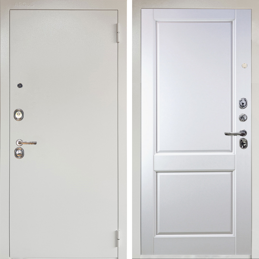 Входная дверь Аргус ЛЮКС 3К Снежно-белый Люкс 3к металл Снежно-белый + Соренто Белая эмаль