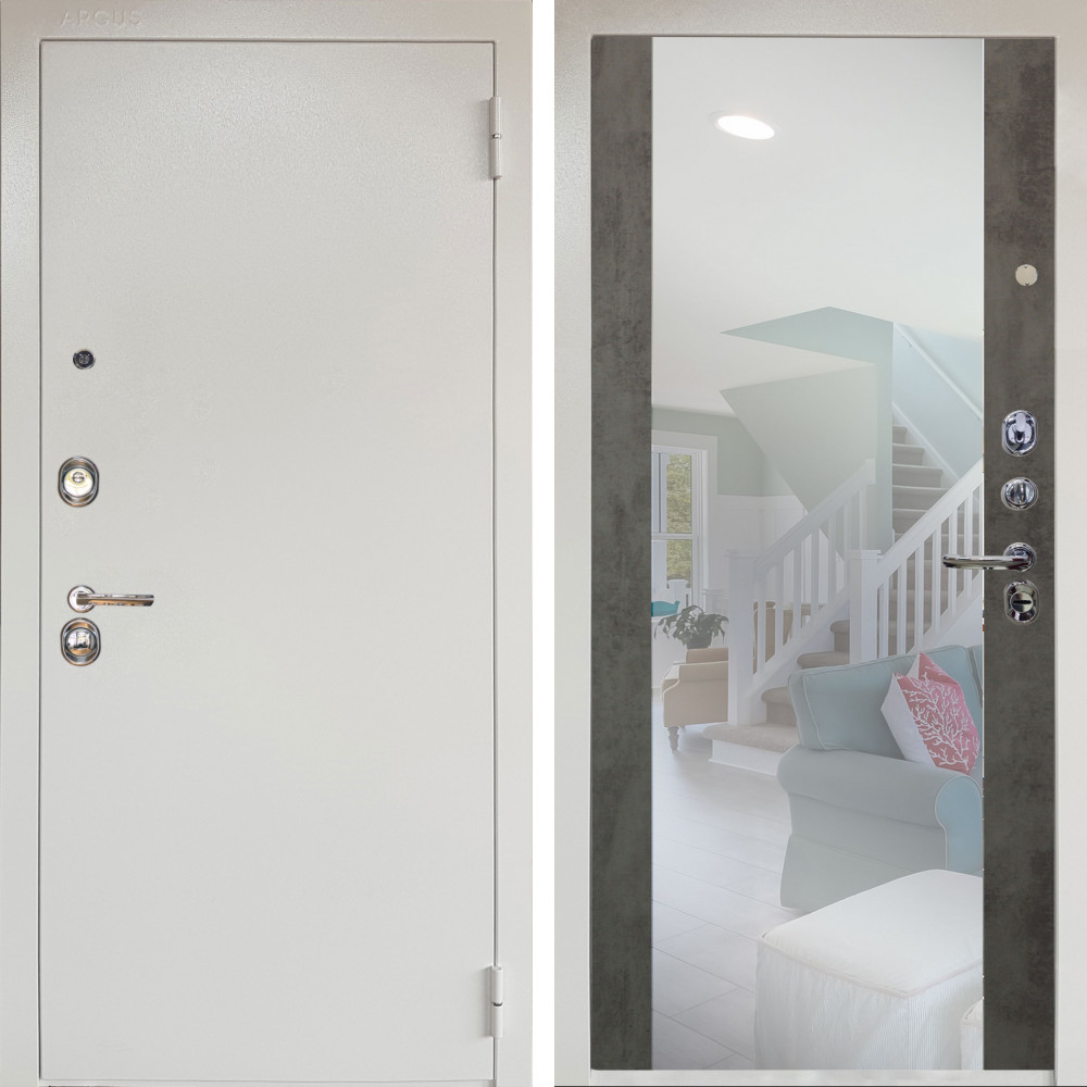 Входная дверь Аргус ЛЮКС 3К Снежно-белый Люкс 3к металл Снежно-белый + Вояж Светлый бетон