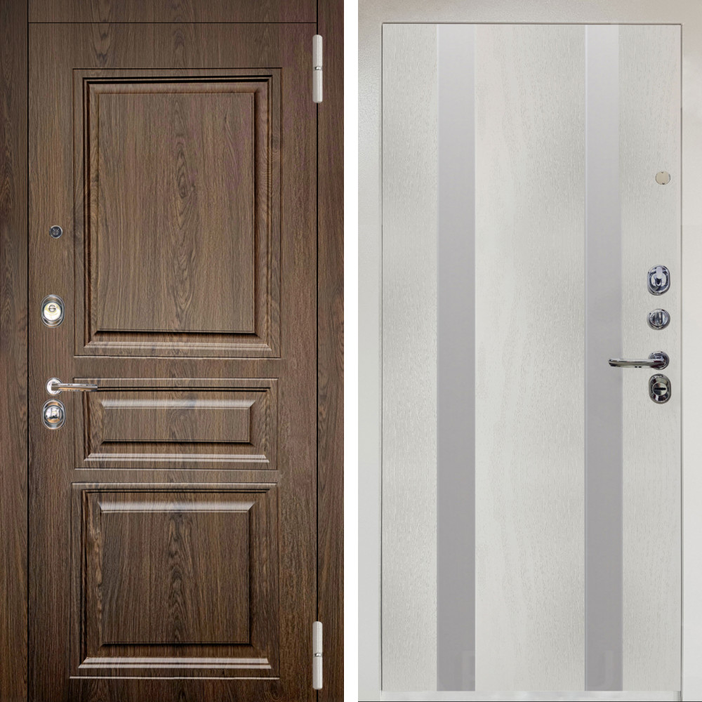 Входная дверь Аргус ЛЮКС 3К Снежно-белый магистр дуб кантри + Дуэт Белое дерево вставки Изабель