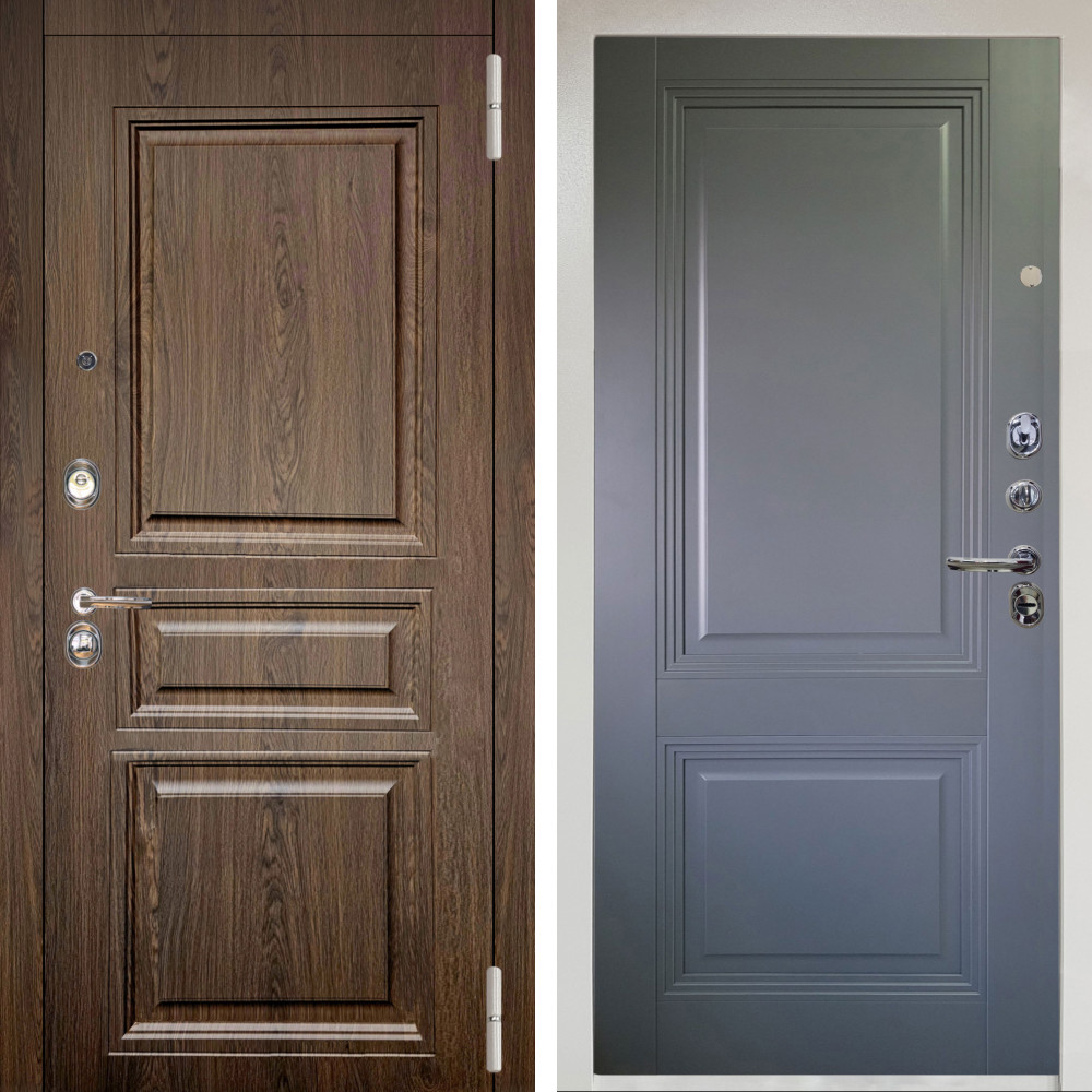 Входная дверь Termo-Door с утеплением: внешняя отделка Роял Графит, внутренняя отделка Престиж дуб.Толщина полотна 100 мм., цилиндровый замок, доставка и установка в Москве и МО, гарантия 1 год.