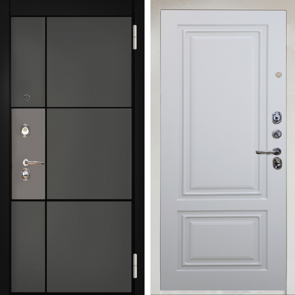 Входная дверь Termo-Door с утеплением: внешняя отделка Смарт Матрикс, внутренняя отделка Зеркало белый софт.Толщина полотна 95 мм, цилиндровый замок, доставка и установка в Москве и МО, гарантия 1 год.
