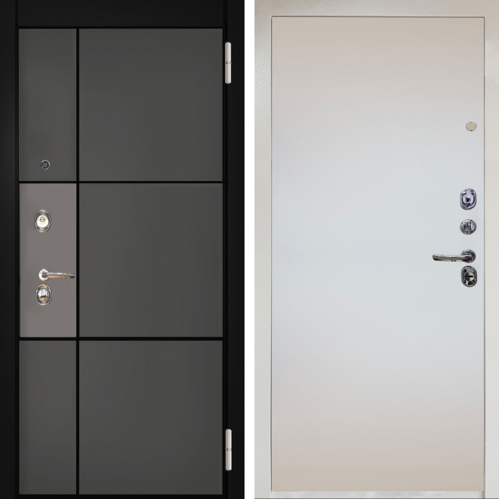 Входная дверь Termo-Door Смарт Орегон Black - Зеркало Триумф Белый софт