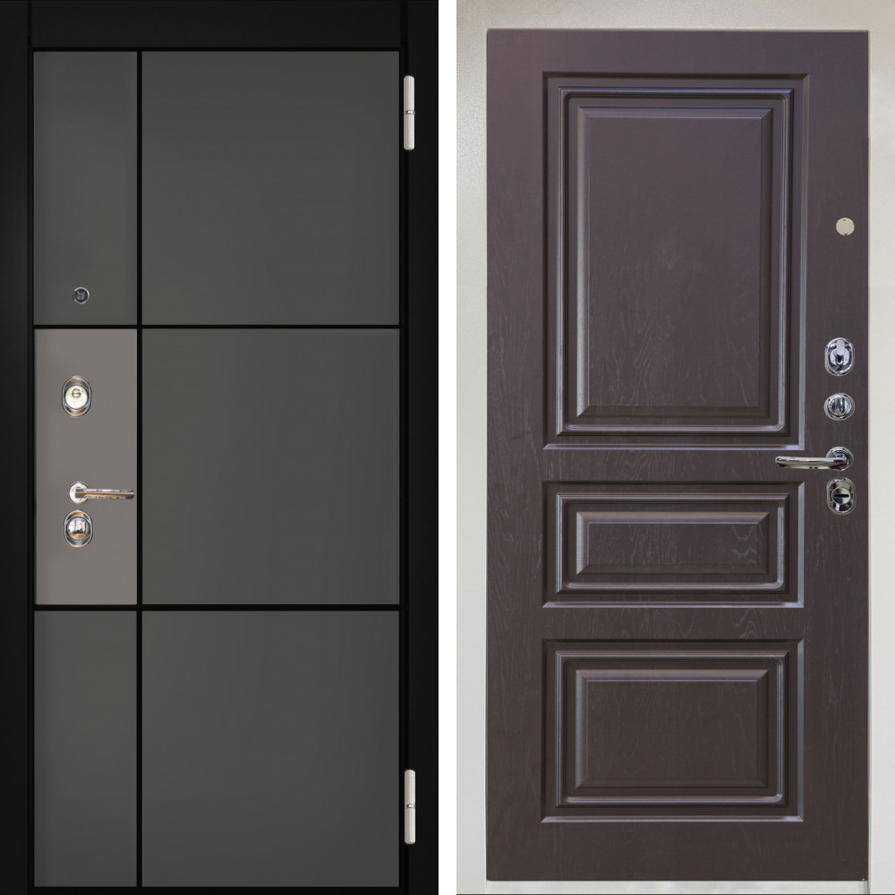 Входная дверь Авангард с внутренней отделкой Зеркало бетон светлый • Габаритные размеры: 2050x860 мм, 2050x960 мм • Металл 1.5мм. • Внешнее покрытие: МДФ 12 мм. • Цвет покрытия: Орех коньяк кантри/Черный кварц. • Толщина полотна: 100 мм. • Толщина коробки: 105 мм. • Окрас короба:Черная шагрень. • Короб закрытого типа, утепленный. • Уплотнитель: 3 контура. • Два вертикальных ребра жесткости. • Замок основной: Guardian 3211 (цилиндровый). • Замок дополнительный: Guardian 300 • Врезная броненакладка. • Независимая задвижка есть. • Фурнитура Черная.