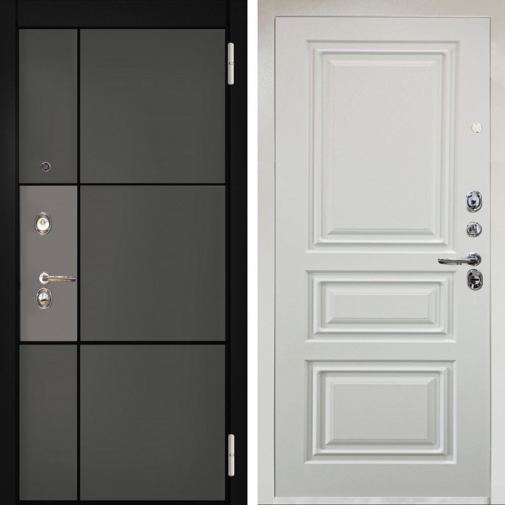 Входная дверь Termo-Door с утеплением: внешняя отделка Смарт Тренд White, внутренняя отделка Гладкая Панель Под Покраску Под покраску (грунт).Толщина полотна 95 мм, цилиндровый замок, доставка и установка в Москве и МО, гарантия 1 год.