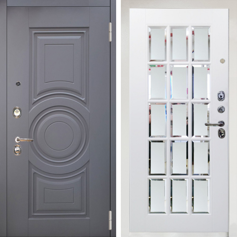 Входная дверь Аргус ЛЮКС 3К Снежно-белый Могадиш Силк флай + Мэрелин Софт милк с фацетом и пескоструем
