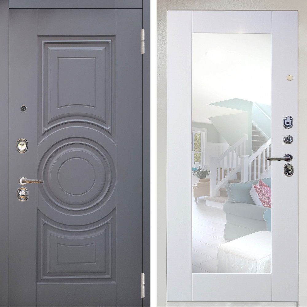 Входная дверь Termo-Door Фаворит - Зеркало Триумф Белый софт