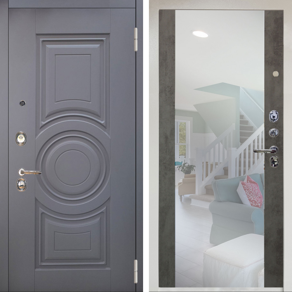 Входная дверь Termo-Door с утеплением: внешняя отделка Вертикаль Бетон Темный, внутренняя отделка Зеркало Слоновая кость.Толщина полотна 100 мм., цилиндровый замок, доставка и установка в Москве и МО, гарантия 1 год.