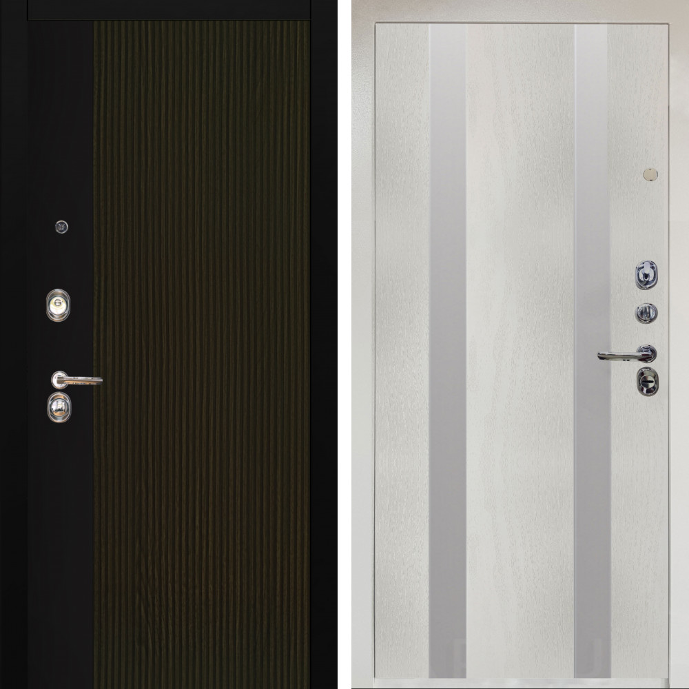 Входная дверь Аргус ЛЮКС 3К Снежно-белый рокси дуб рейка морение + Дуэт Белое дерево вставки Изабель
