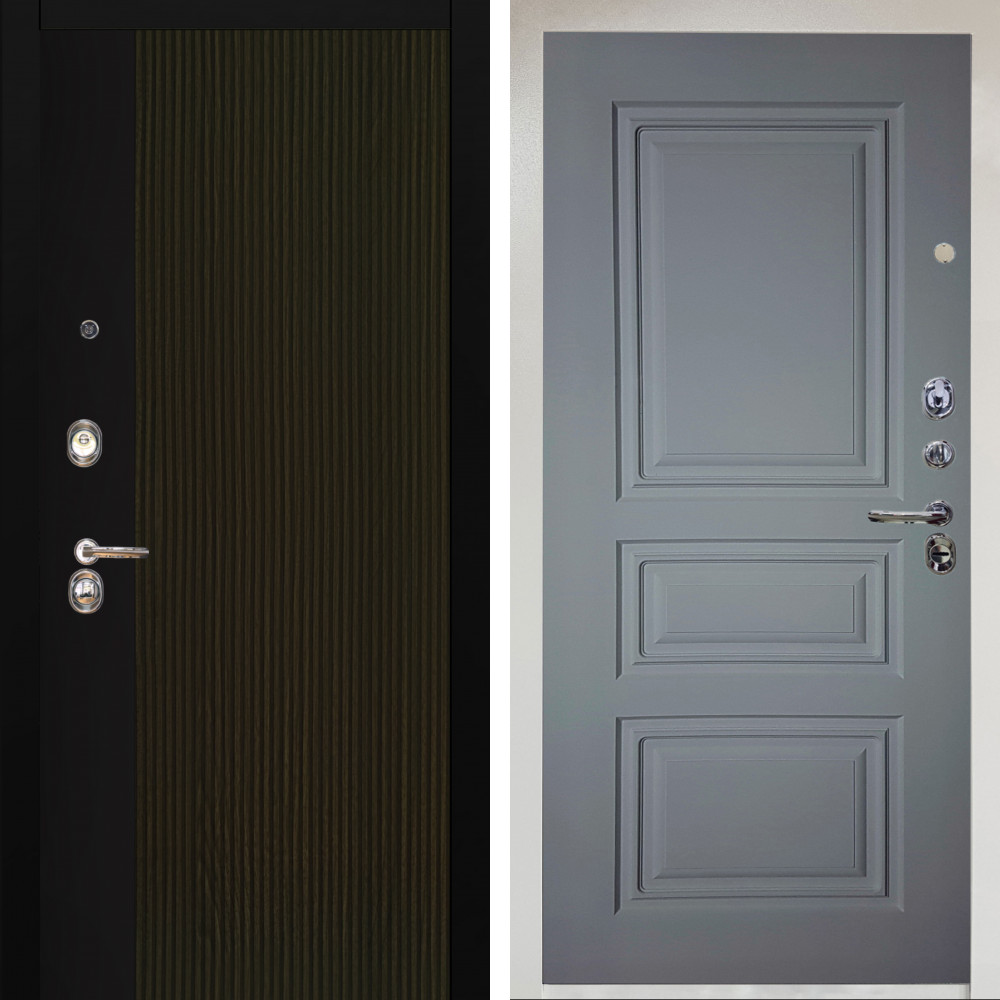 Входная дверь Termo-Door с утеплением: внешняя отделка Смарт Геометрия, внутренняя отделка Горизонт Grey софт.Толщина полотна 95 мм, цилиндровый замок, доставка и установка в Москве и МО, гарантия 1 год.