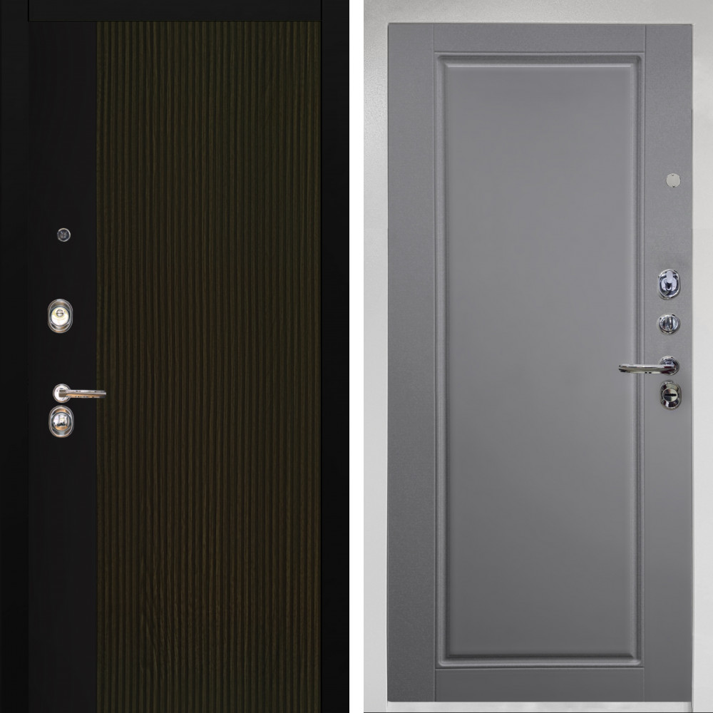 Входная дверь Termo-Door с утеплением: внешняя отделка Граунд Грей, внутренняя отделка Зеркало Grey Софт.Толщина полотна 100 мм., цилиндровый замок, доставка и установка в Москве и МО, гарантия 1 год.
