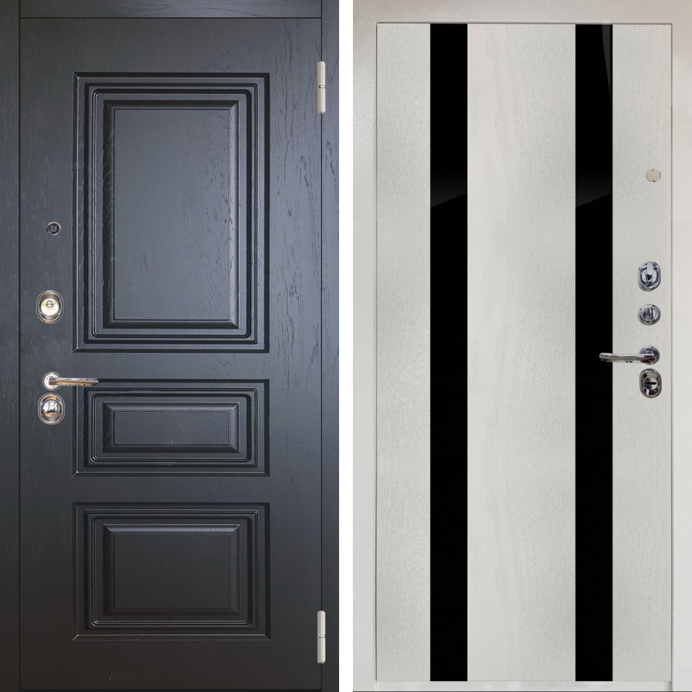 Входная дверь Termo-Door с утеплением: внешняя отделка Смарт Тренд Black, внутренняя отделка Лион Grey софт.Толщина полотна 95 мм, цилиндровый замок, доставка и установка в Москве и МО, гарантия 1 год.