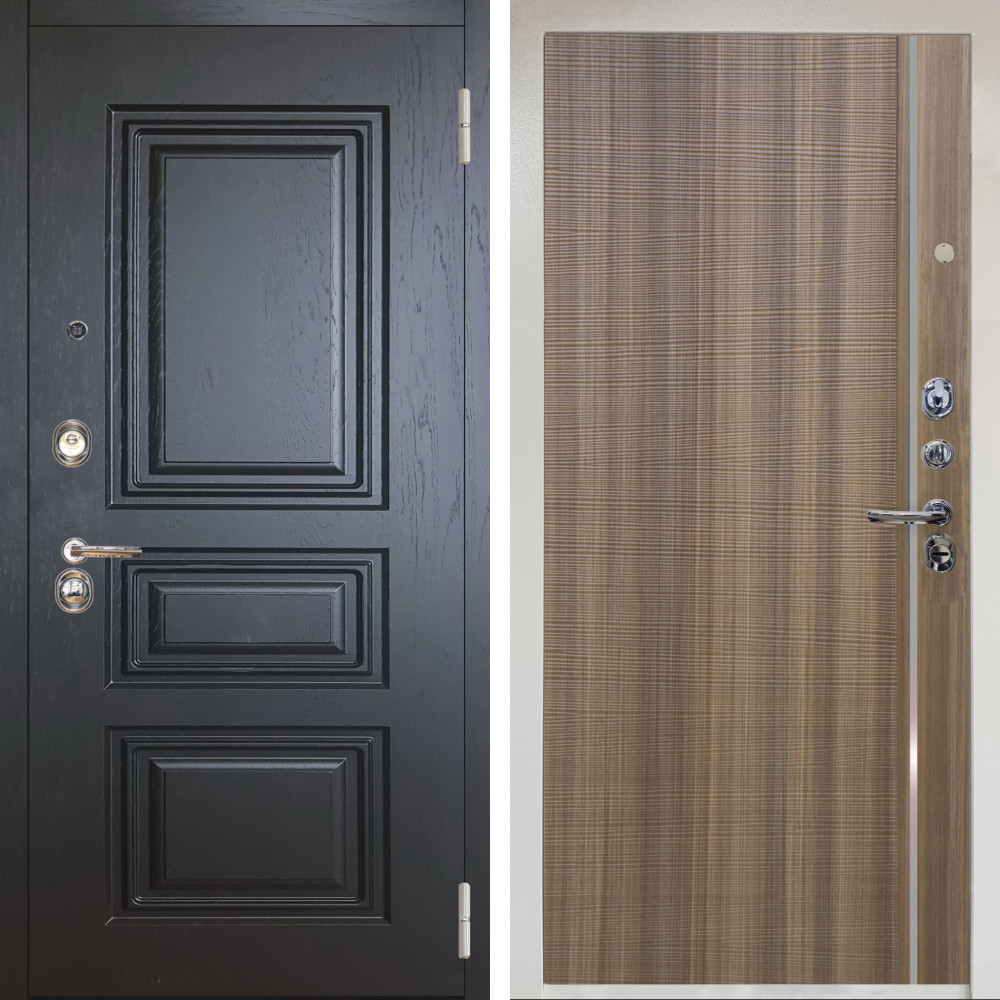 Входная дверь Termo-Door с утеплением: внешняя отделка Вертикаль Бетон Темный, внутренняя отделка Мастино Дуб.Толщина полотна 100 мм., цилиндровый замок, доставка и установка в Москве и МО, гарантия 1 год.