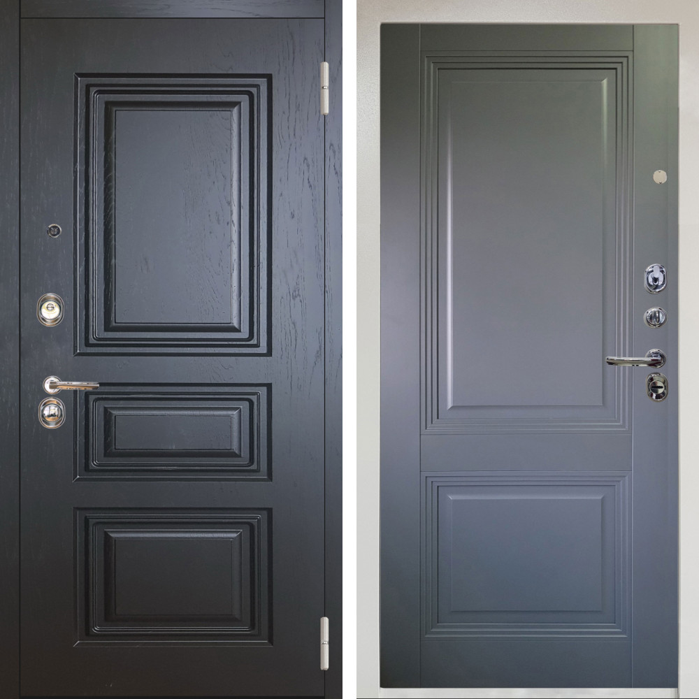 Входная дверь Termo-Door с утеплением: внешняя отделка Роял Графит, внутренняя отделка Зеркало Фацет Черный кварц.Толщина полотна 100 мм., цилиндровый замок, доставка и установка в Москве и МО, гарантия 1 год.