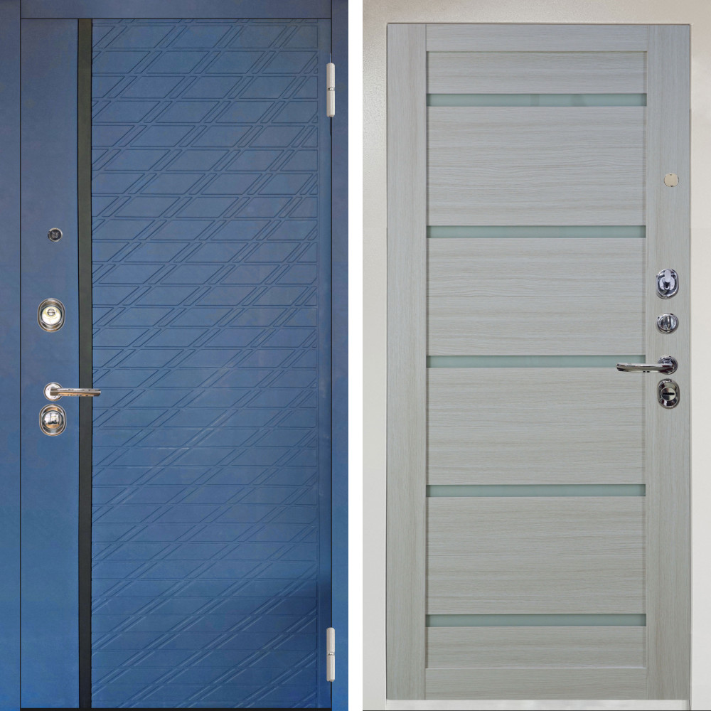 Входная дверь Аргус ЛЮКС 3К Снежно-белый Тори Синий софт + Александра Белая лиственница