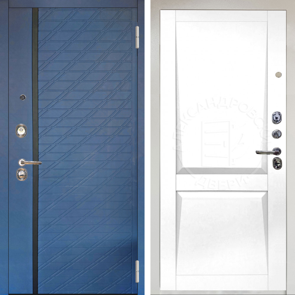 Входная дверь Аргус ЛЮКС 3К Снежно-белый Тори Синий софт + Ариана Белая эмаль