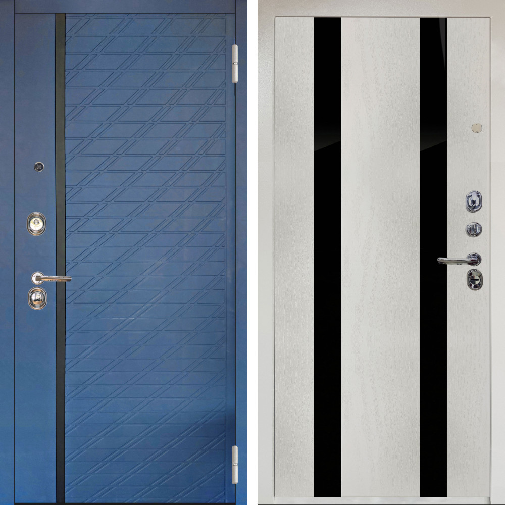 Входная дверь Аргус ЛЮКС 3К Снежно-белый Тори Синий софт + Дуэт Белое дерево вставки кензо
