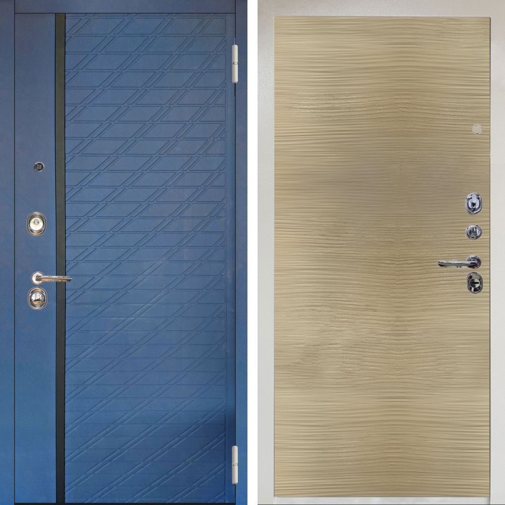 Входная дверь Аргус ЛЮКС 3К Снежно-белый Тори Синий софт + Элегант Дорс светлый горизонт