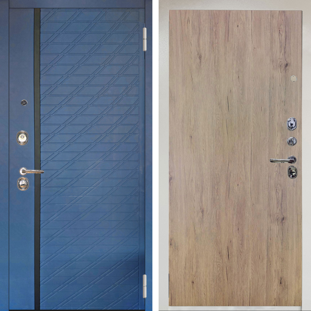 Входная дверь Аргус ЛЮКС 3К Снежно-белый Тори Синий софт + Элегант Рустик соломенный